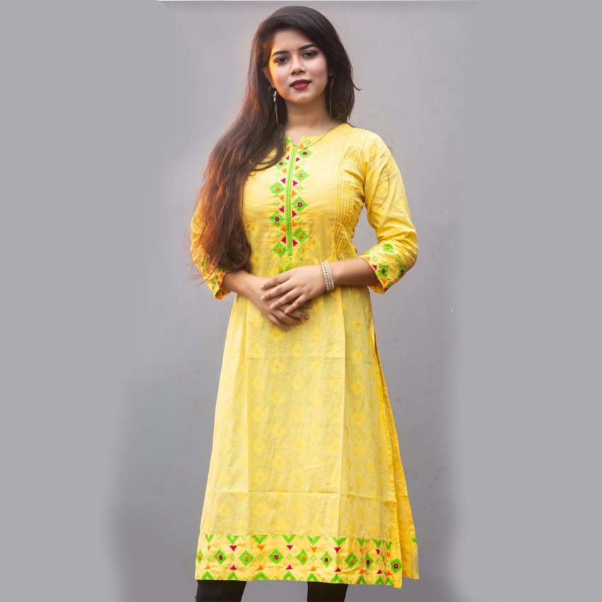 This Premium cotton kameez is comfortable and can be worn for regular use. It is a perfect wear for women like you. You will love to wear this premium custom kameez just for its versatile usability and diversified fashion sense. It is generally made of Fine cotton fabrics and easy to clean. It is perfect to wear with jeans and gabardine pant. Cloud design with a regular fit for women. It is useful on formal as well as casual occasion. It's designed to be comfortable and durable.