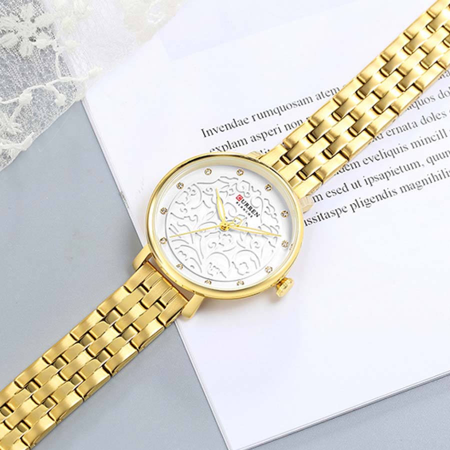 CURREN 9046 Stainless Steel Analog Watch For Women -Golden