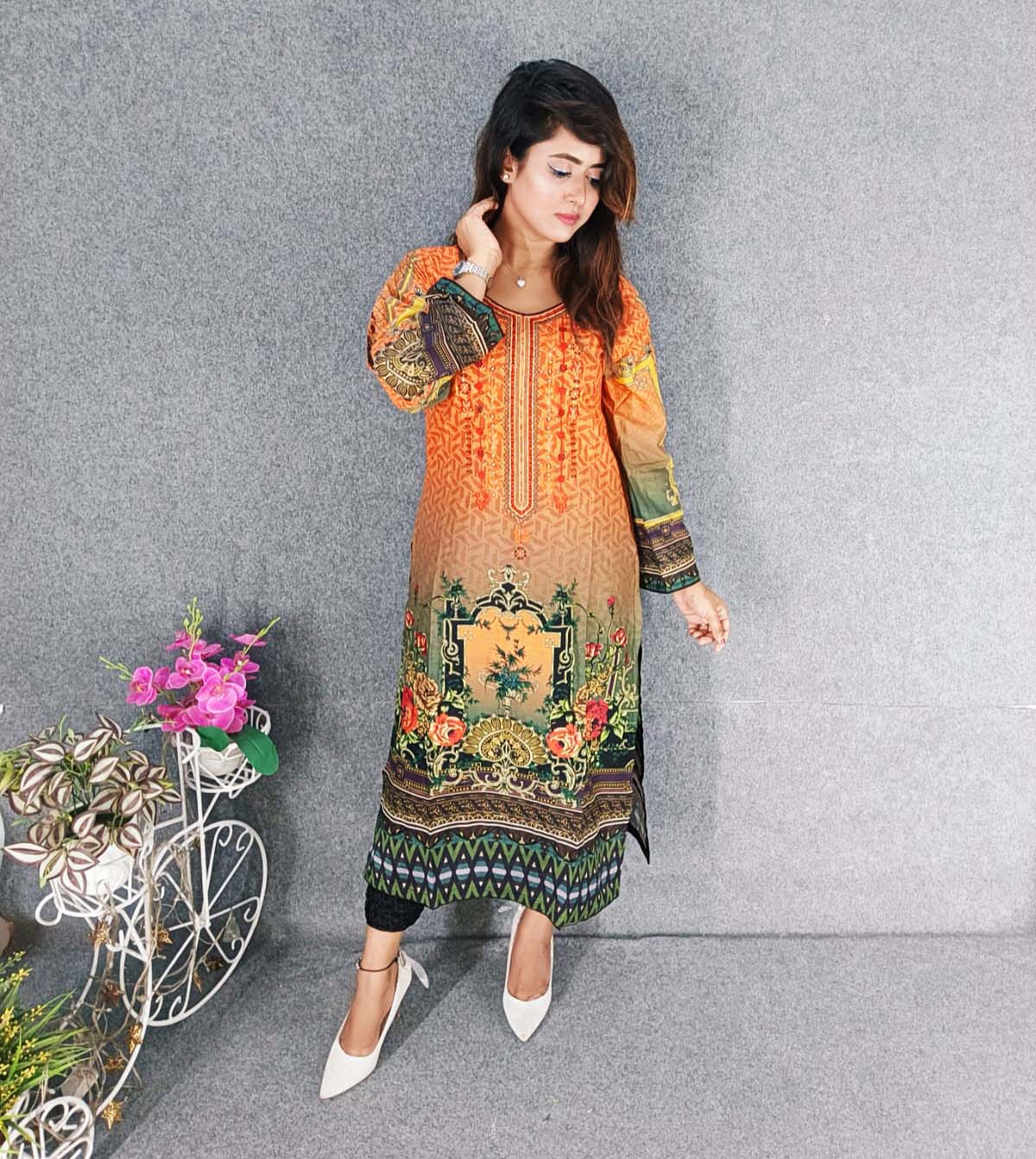 Digital Printed Cotton Kameez with Hand works for women in casual Trendy dress up-6263AB