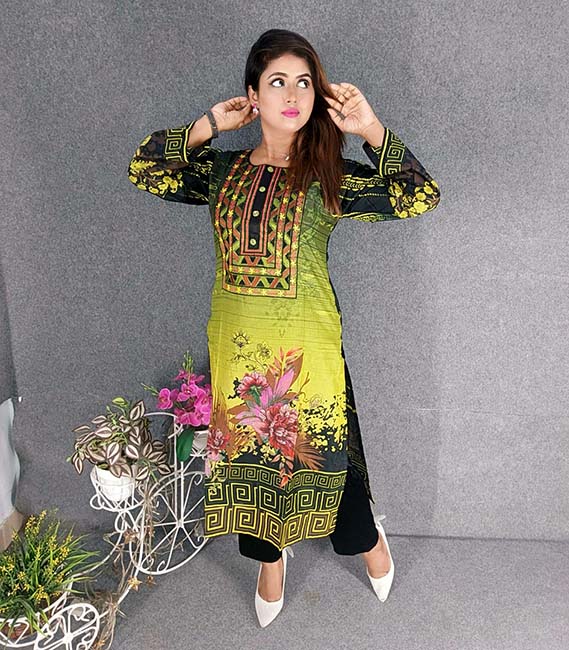 Digital Printed Cotton Kameez with Hand works for women in casual Trendy dress up-6273AB