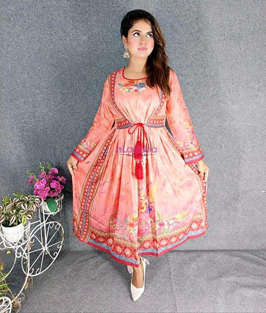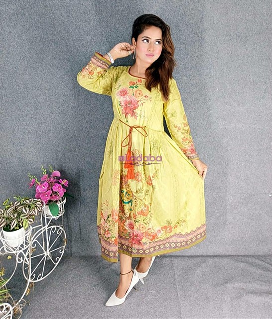 Digital Printed Cotton Kurtis with Hand works for women in casual Trendy dress up-6245AB
