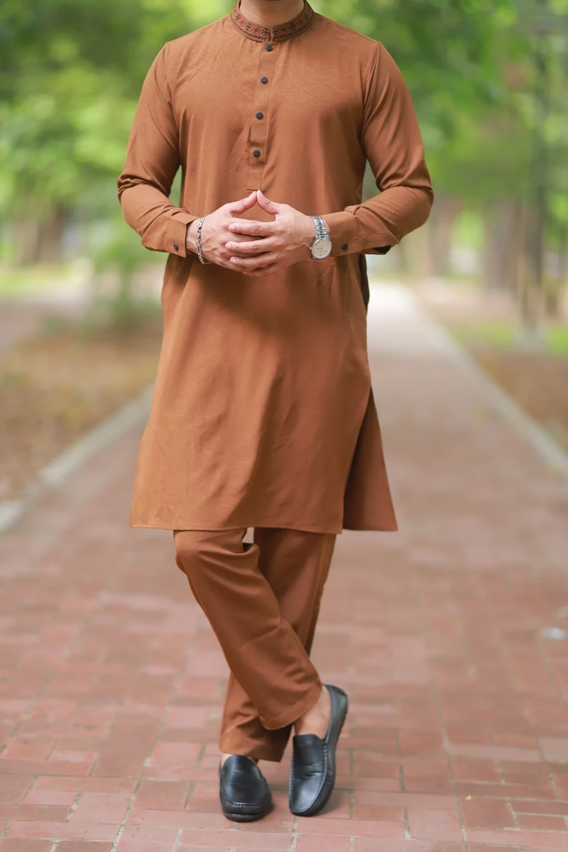 Step into elegance with our N2 Panjabi, meticulously crafted from 100% ultra-fine Fabric for a buttery-soft feel and effortless wear. Designed for the modern gentleman who values both tradition and refinement, this standout piece features signature embroidery, premium detailing, and Imported engraved buttons — a true symbol of distinction.